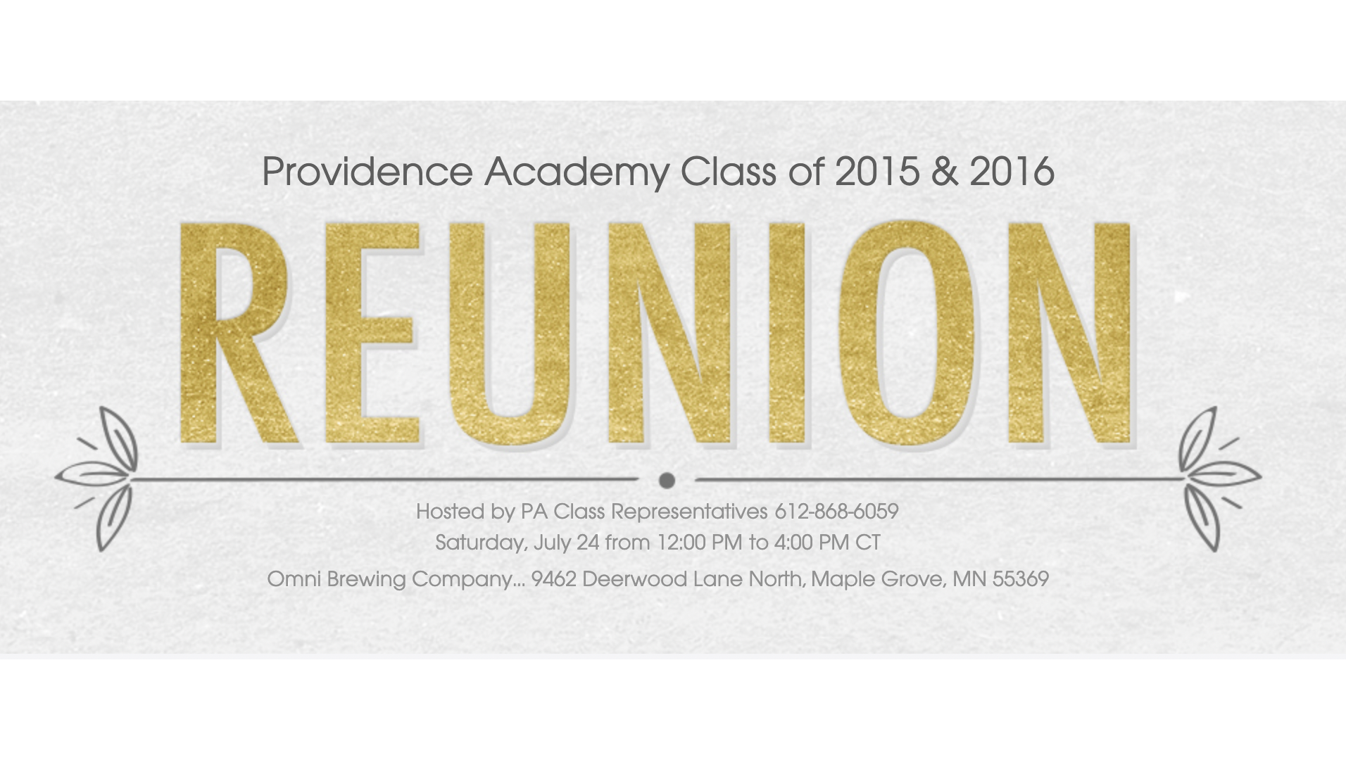Since we are able to meet in-person again, the 5th year reunion of both the 2015 and 2016 graduating classes will be at OMNI Brewing Co. on Saturday, July 24, 2021 from 12-4.